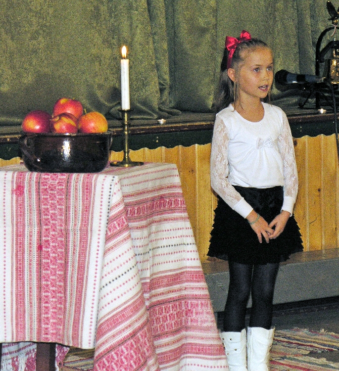 "Karácsonynak üzenete, emberek, hogy minékünk üdvözítő született! Boldogságos édesanyja ölében mosolyog ő, szent angyalok körében.