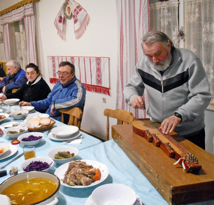 Vacsoraestünk gasztronómiai finomságai mellett lelkünk is feltöltődött a majd' 80 éves Makó Pali bácsi esti csodálatos citera-zenés előadásával.
