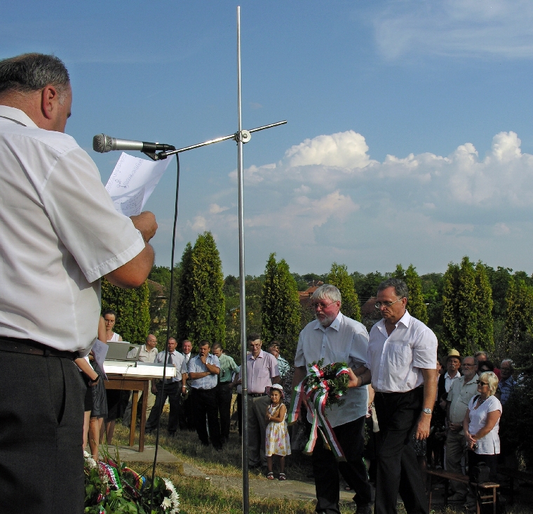 Az ünnepi szónoklatok elhangzása- és az ünnepi műsor után Igrice Egyesület és a Trianon Társaság képviseletében Leviczky Mihály- és Dalmay Árpád elnökök helyezték el emlékezésünk közös koszorúját a református templomkertben álló Kölcsey szobornál.
