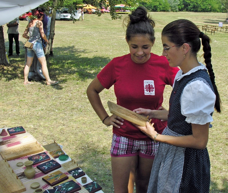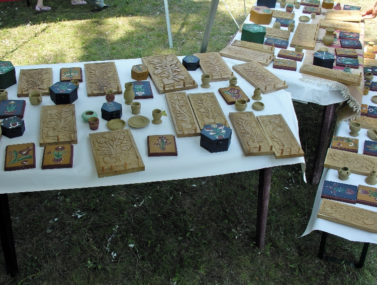 Ugyancsak itt kerültek kiállításra a nálunk vendégeskedő székelyföldi kézműves mesterek munkái. Ők azok, akik az egyhetes tábor szakmai munkájában működtek közre.Táborozó gyerekeinket tanították a fafaragás, a bútorfestés és a kerámiakészítés alapfogásaira.