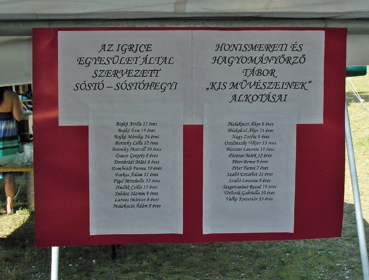 Gyerekek készítette fafaragások, kerámiák és festett emléktárgyak az Igrice Napon bemutatásra kerültek. Külön sátorban berendezett kis kiállításukat nagy érdeklődés kísérte.