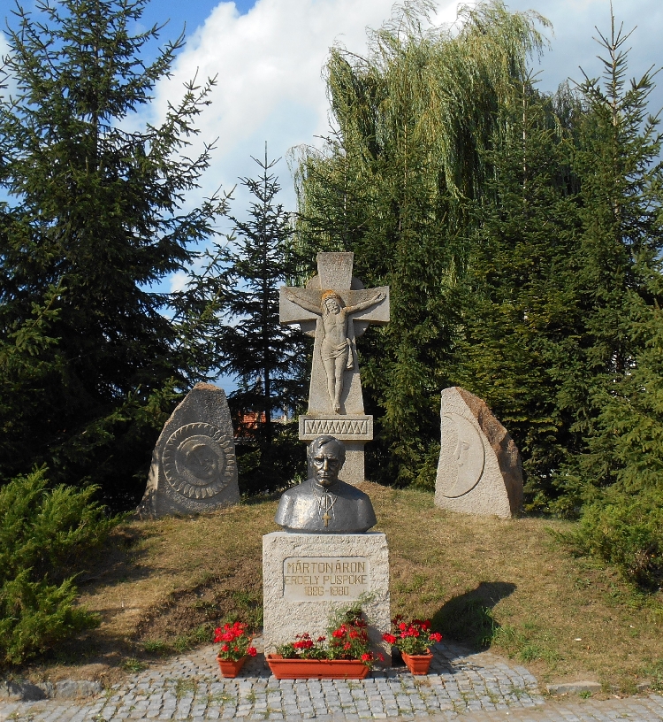 Márton Áron püspök emlékhelyénél (Csíkszentdomokos)