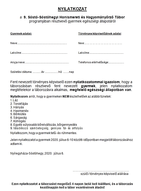 ► Nyilatkozat táborozásra alkalmas egészségi állapotról