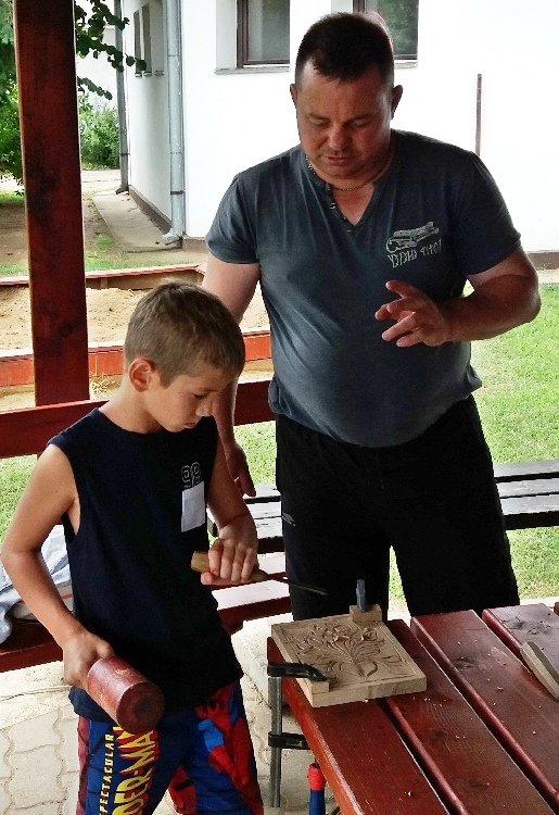 A tábor negyven lakója erdélyi kézműves mesterek vezetésével tanulhatta a fafaragás, bútorfestés és kerámiakészítés alapfogásait.