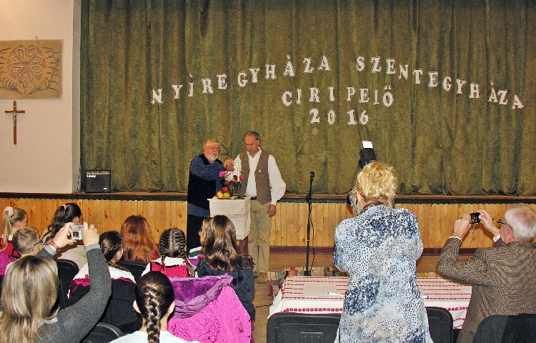 Utazásunk fő célja azonban a Szentegyházán rendezett esti versenyen, a "Szentegyháza-Nyíregyháza Ciripelőn" való részvételünk volt. Előválogatónkat október elején tartottuk a sóstóhegyi iskolában. A legjobban teljesítők közül zsűri választotta ki azt a 9 főt, akik velünk utazva Szentegyházán mérhették össze tudásukat a székelyföldi gyerekekével.