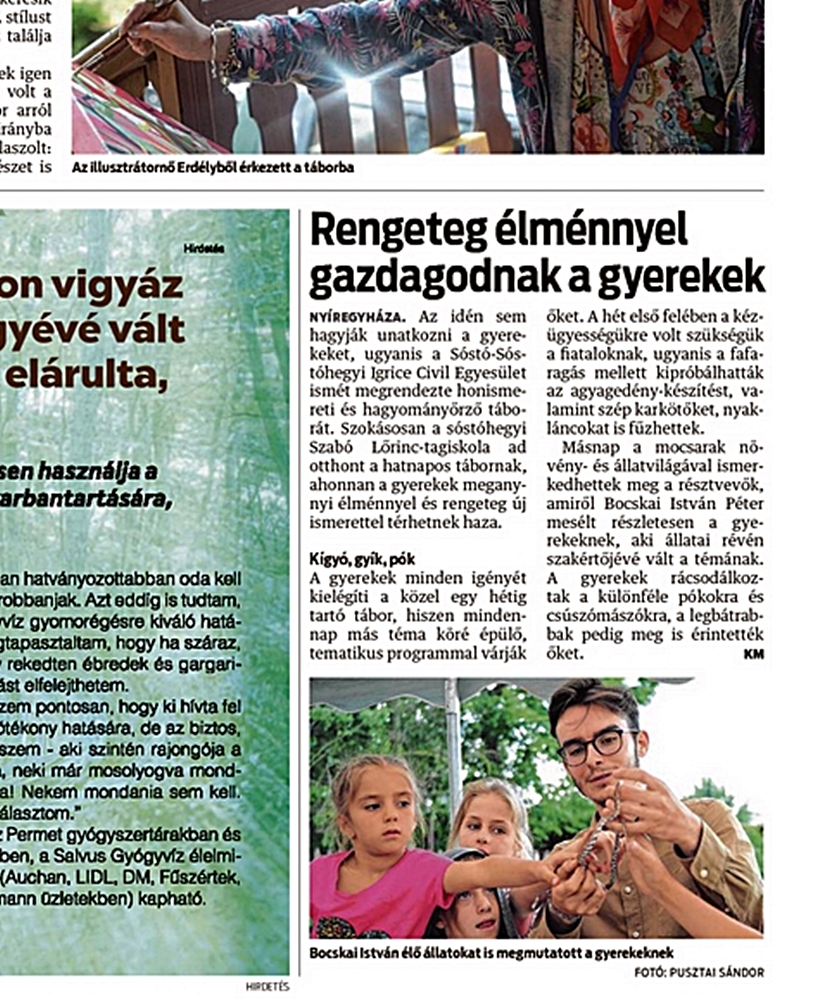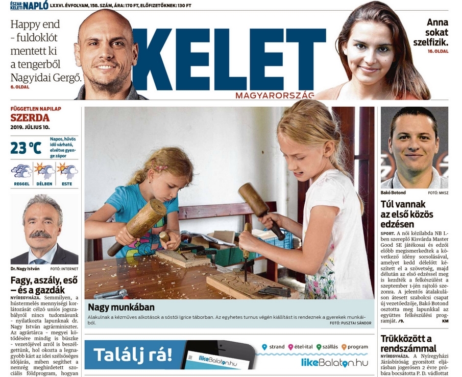 ► Rólunk írták a Kelet-Magyarország megyei napilapban (2019. július 13-i számban címlapos híradás)