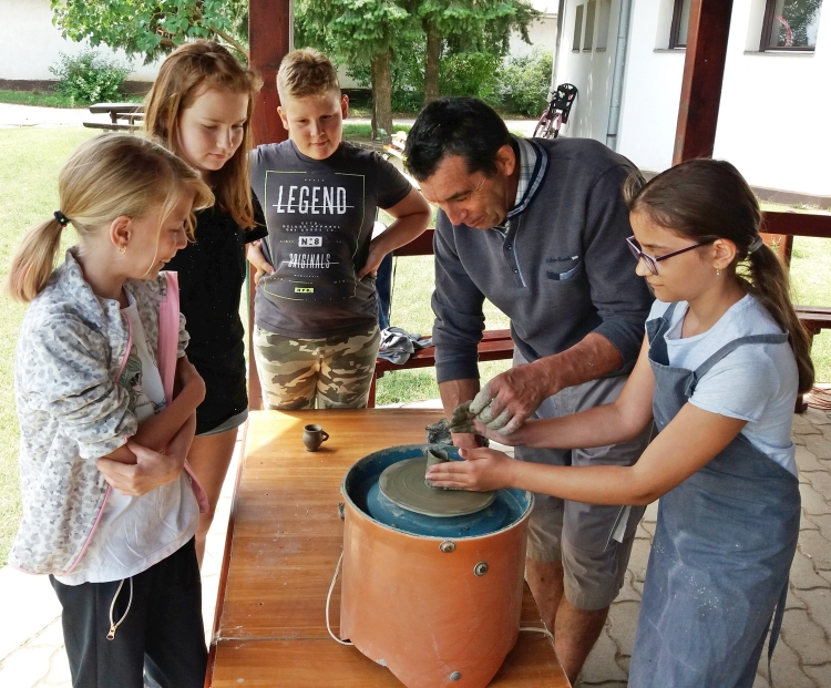 A táborozóink nagy örömére ebben az esztendőben is a hozzánk évek óta visszatérő székelyföldi mesterek vezették a kézműves foglalkozásokat. Személyes közreműködésükkel egy héten át a székely népi hagyományos fafaragás, kerámiakészítés, bútorfestés, gyöngyfűzés, valamint a nemezelés alapfogásait gyakorolhatták a táborban résztvevő gyermekek és a vállalkozó kedvű felnőtt kísérőik is.